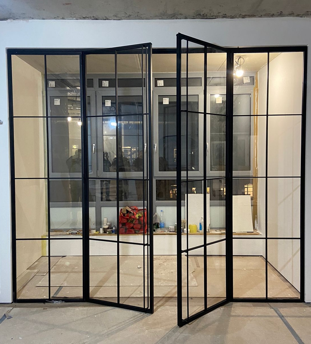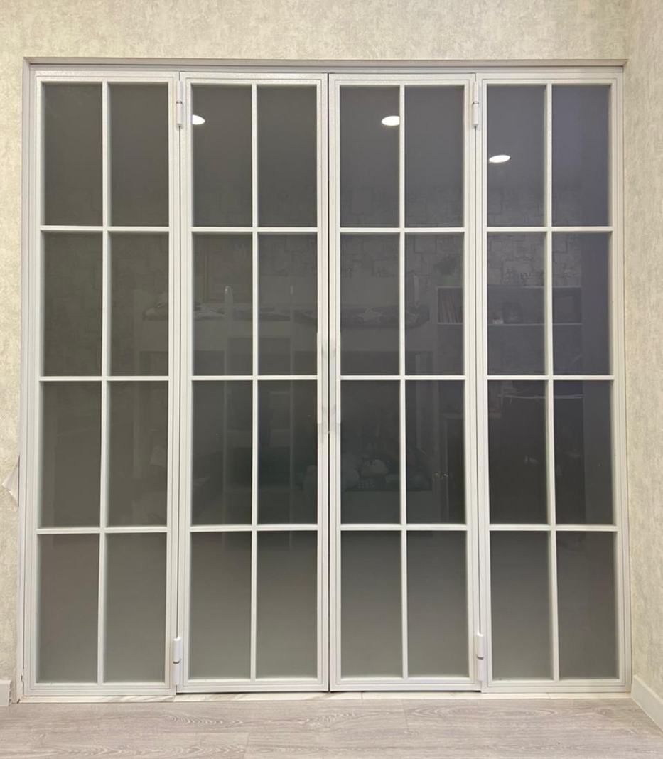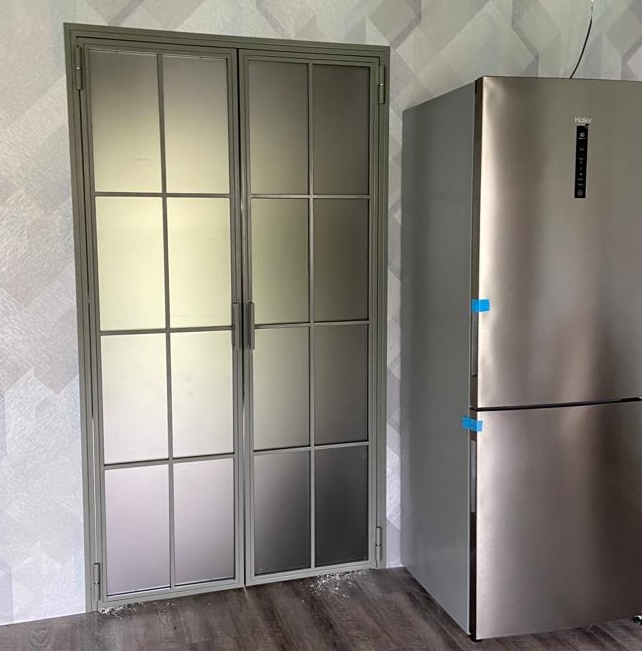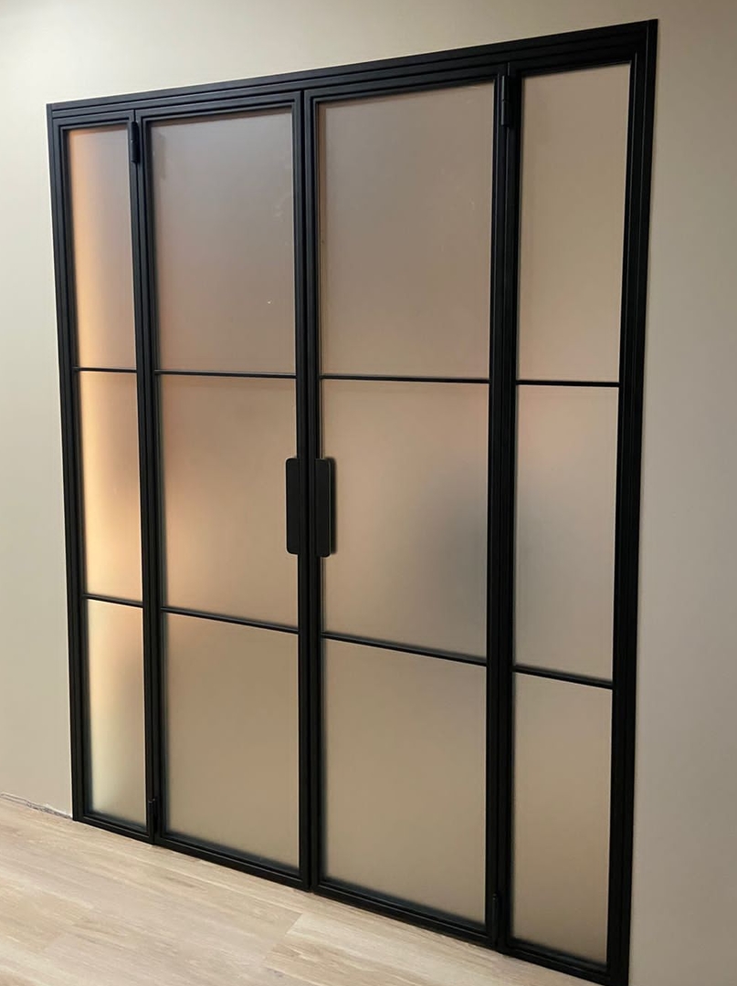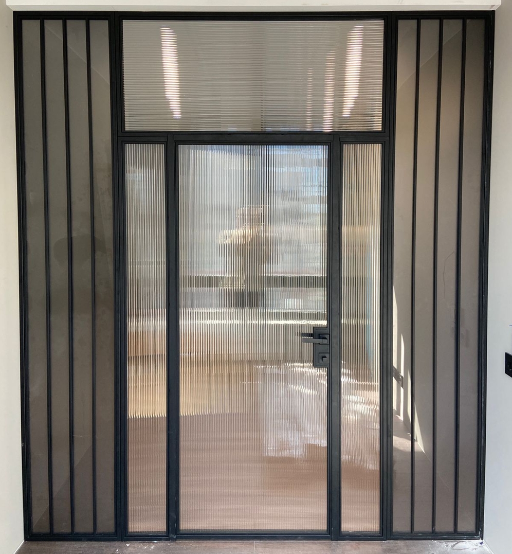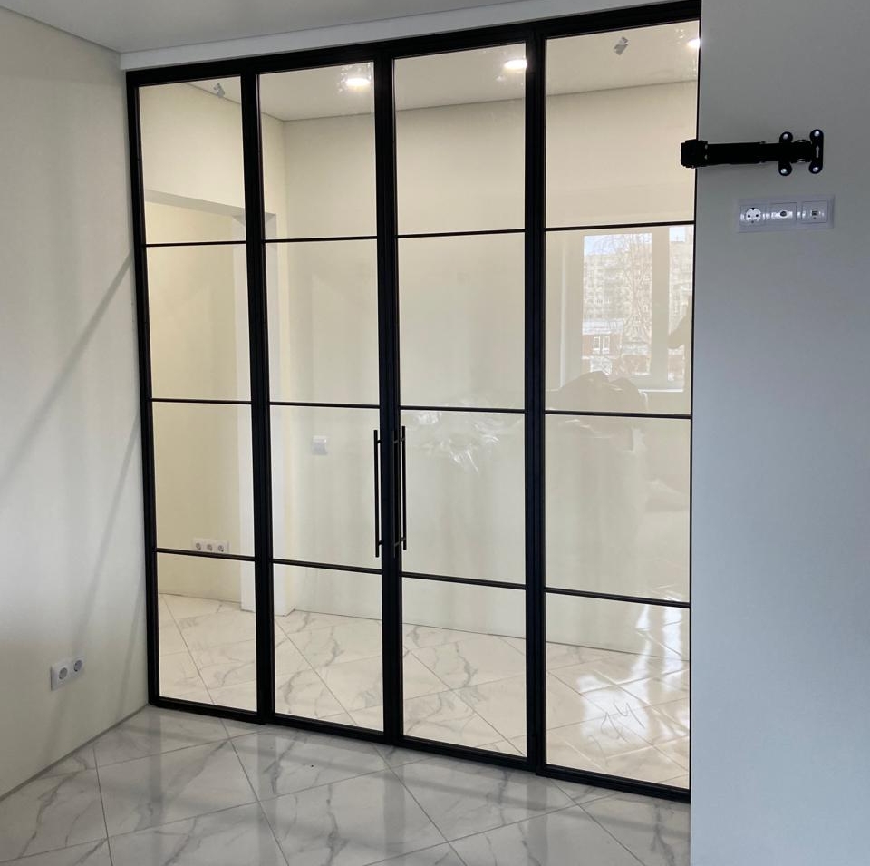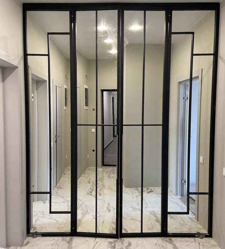 Заполнение: Стекла каленые от 4-х мм. (прозрачные,матовые, тонированные, в пленке) Зеркала. Рифленое стекло MORU. Триплекс. ПВЛ лист. Металлопрофиль. Метилакриловое стекло. Поликарбонат. Любые панели толщиной от 4-х до 10 мм.